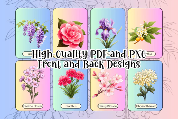 This set includes 8 Japanese flower flashcards across 2 pages, with front and back designs that help make learning more visually rich and memorable. Each flower is paired with a vivid graphic and symbolic meaning, making the set suitable not only for educational purposes but also for cultural learning, nature study, and decorative inspiration.
