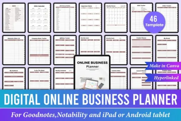 This bundle includes an impressive collection of planner types, including a Digital Faith Based Journal (50 templates), Digital Bible and Devotional Planner (50 templates), Digital Budget Planner (80 templates), Digital Online Business Planner (46 templates), Digital Prayer Journal (32 templates), Digital Reading Planner (50 templates), Digital Self Care Journal (60 templates), Digital Small Business Planner (63 templates), Digital Travel Planner (34 templates), and Digital Wedding Planner (36 templates). Altogether, the bundle includes 500 different hyperlinked pages, giving users a large and flexible digital planning library in a single purchase.