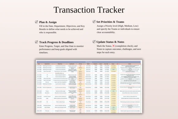 The OKR Tracker Spreadsheet Template is a practical goal management tool for teams and professionals who want better visibility, stronger accountability, and clearer progress tracking. With an OKR dashboard, priority controls, smart calendar, team assignments, progress percentages, notes, and action items, this template helps you stay organized and move steadily toward important business goals.