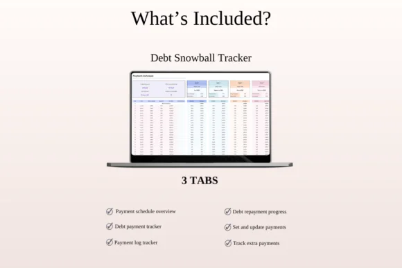 Inside the bundle, you get a Debt Repayment Tracker, Debt Snowball Method Spreadsheet, Bill Organizer, and Rental Income & Expense Tracker for Airbnb. These templates help you track multiple debts, monitor payment progress, plan a snowball payoff strategy, organize bill due dates, and manage rental bookings, profits, and expenses.