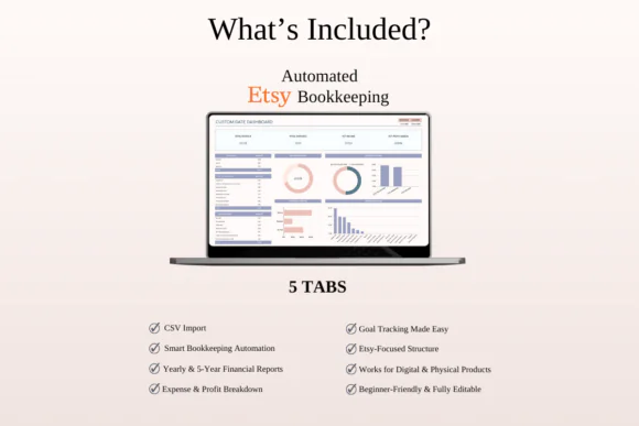 The Automated Etsy Bookkeeping Spreadsheet helps you track sales, fees, expenses, and profit in one place. The Etsy Seller Income & Expense Tracker gives you a clear system to monitor your shop’s cash flow, making it useful for monthly reviews, business planning, and tax-time organization.