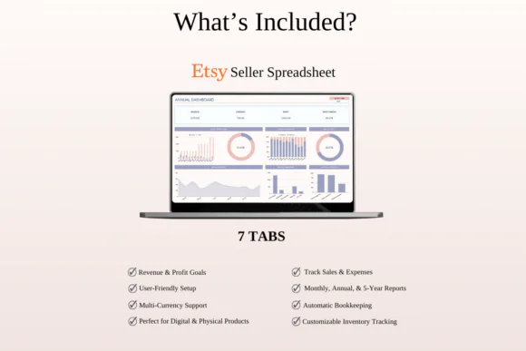Manage your Etsy shop finances with ease using this Premium Templates for Etsy Seller Spreadsheet Bundle for Excel and Google Sheets. Designed specifically for Etsy sellers, handmade business owners, digital product creators, printables sellers, craft shop owners, and online store entrepreneurs, this bundle helps you track sales, expenses, fees, income, profit, and cash flow in one organized system.