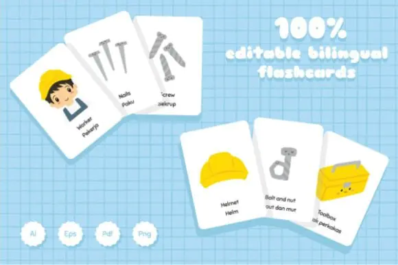 These Printable Worker and Tools Bilingual Flashcards are a versatile and engaging resource for helping learners study occupation and tool vocabulary in English and Indonesian while enjoying colorful, illustration-based language practice.