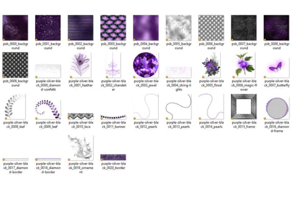 Add a luxurious and glamorous touch to your creative projects with this stunning Purple Silver and Black Graphics Bundle. Designed in a rich and elegant color palette, this digital scrapbooking kit is perfect for creating stylish, feminine, and sophisticated designs for both personal and commercial use.