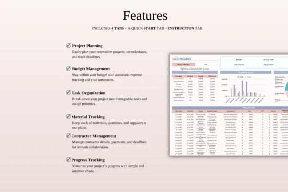 This digital renovation tracker includes: