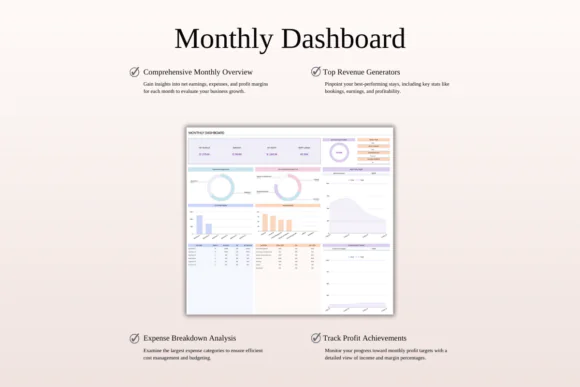 The dashboards make it easier to understand which properties are performing well, which platforms bring more income, which months are strongest, and whether your investment is moving in the right direction. It is practical for beginners but powerful enough for hosts managing multiple properties.