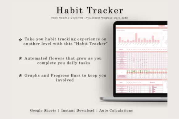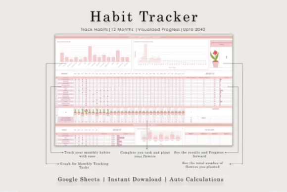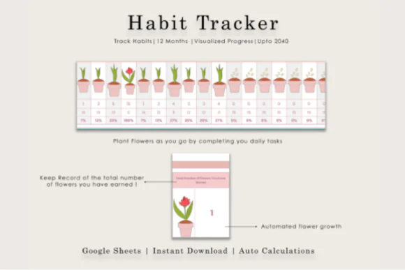Make habit tracking more fun, visual, and motivating with this Sunflower Habit Tracker Spreadsheet for Google Sheets. Designed with a soft blush pink color palette and a unique sunflower-growing progress layout, this digital habit tracker helps you build routines, stay consistent, and clearly see your progress over time.