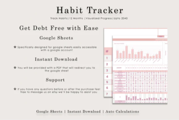The streak calculations help you stay accountable, while the charts and reusable monthly templates make it easy to continue tracking over time. With its soft blush pink design and simple Google Sheets format, this template is practical, beautiful, and easy to use for long-term personal growth.