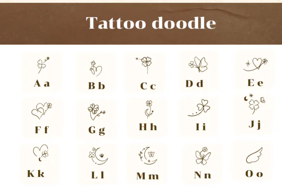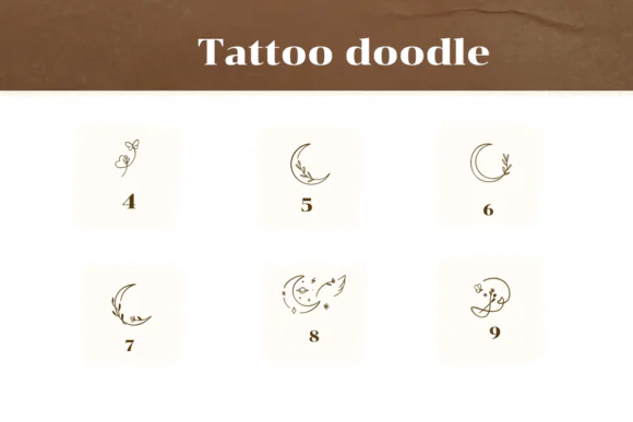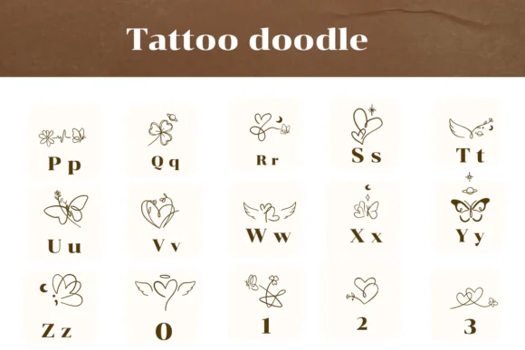 With its soft romantic aesthetic and playful edge, Tattoo Doodles helps you create designs that feel expressive, trendy, and visually memorable. Whether you are designing tattoo flash sheets, feminine branding elements, cute greeting cards, moon-and-flower artwork, butterfly stickers, or elegant social content, this font adds instant charm to every composition.