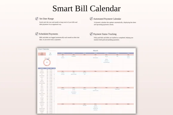 Use the calendar-style tracking system to stay aware of upcoming bills, debt payments, and important financial dates.