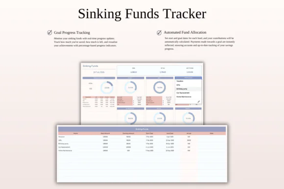 Plan ahead for future expenses by creating sinking funds for yearly payments, special occasions, travel, repairs, gifts, holidays, insurance, or large purchases.