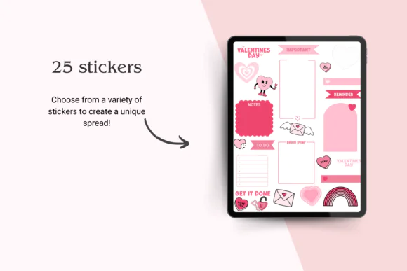 Whether you are creating Valentine-themed planner pages, decorating romantic journal entries, organizing special reminders, or adding cute seasonal accents to your notes, these digital stickers make your layouts feel more personal, festive, and expressive. This bundle is a wonderful choice for planner lovers, journal creators, and anyone who enjoys beautiful holiday-themed digital stationery.