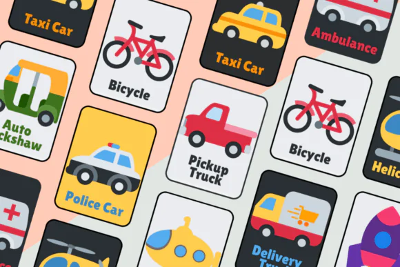 These vehicle transport flashcards are a useful and engaging printable resource for helping children learn about transportation through colorful visual learning and simple educational play.