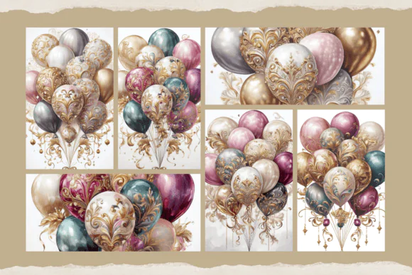 Whether you are designing invitations, greeting cards, scrapbook layouts, junk journals, wall art, planner pages, stickers, sublimation products, posters, or decorative printables, these charming balloon graphics can add elegance and character to your work. Their detailed vintage look makes them a wonderful choice for both personal and commercial design projects.
