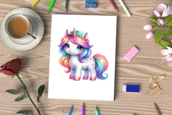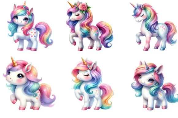These watercolor unicorn graphics are ideal for creating sublimation products, greeting cards, framed artwork, scrapbook pages, t-shirts, pillows, tote bags, mugs, stickers, nursery decor, party decorations, invitations, and other fun DIY craft projects. Their cute and colorful style makes them especially suited for kids’ products, birthday themes, fantasy decor, and whimsical gift ideas.