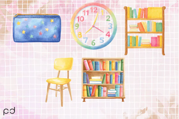 This bundle is a great choice for anyone who loves cute school-themed artwork, watercolor illustration, classroom decor, and printable educational design elements.