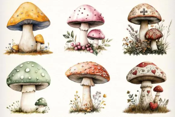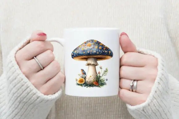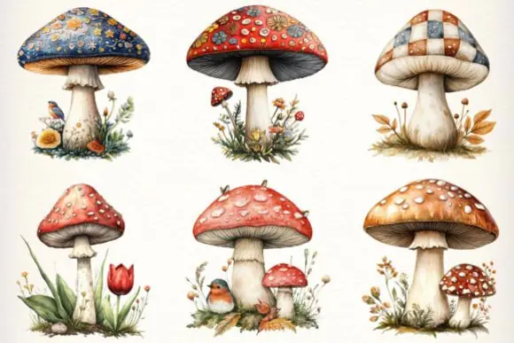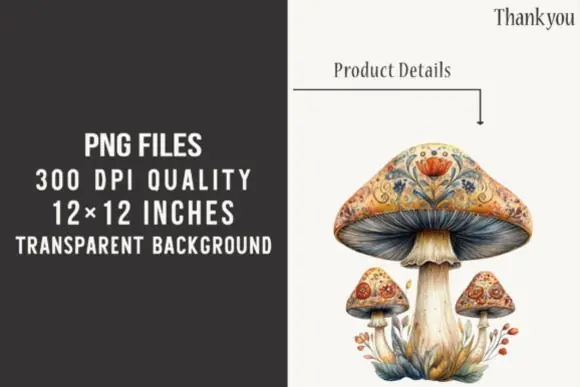 This bundle is ideal for anyone who loves folk art, watercolor illustration, mushrooms, woodland themes, and versatile printable graphics for creative merchandise and DIY craft projects.