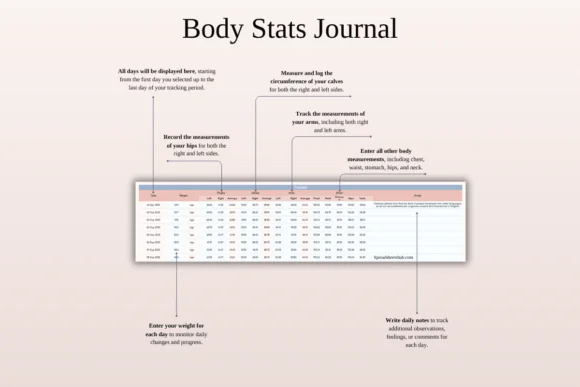 The template helps you focus not only on the number on the scale but also on full-body progress. By tracking measurements such as waist, hips, chest, arms, and more, you can better understand physical changes and stay encouraged even when weight changes slowly.