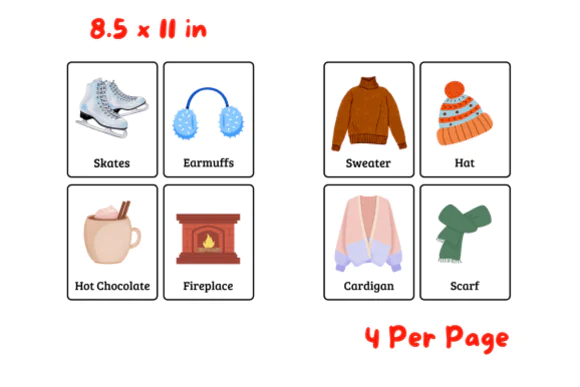 Make seasonal learning fun, engaging, and educational with these Winter Flashcards for Kids. This printable vocabulary set is designed to help children explore winter-themed words through colorful visuals and easy-to-read text, making language learning more interactive and enjoyable.