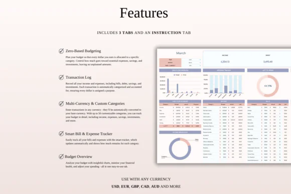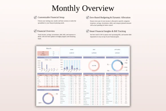 The zero-based structure gives you a clear plan before the month begins, while automatic tracking helps you stay aware throughout the month. Whether you want to manage household bills, build savings, pay off debt, or organize business expenses, this spreadsheet gives you a simple and practical budgeting system.