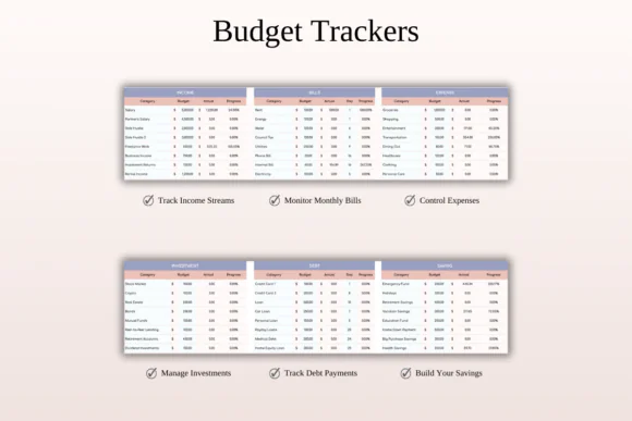 Record money coming in and going out so you can see how closely your actual spending matches your planned budget.