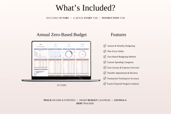 Take control of your money with this Zero-Based Budgeting Templates Bundle for Excel and Google Sheets. Designed around the powerful zero-based budgeting method, this spreadsheet bundle helps you assign every dollar a purpose, track monthly and annual finances, organize savings goals, and build a more intentional money management system.