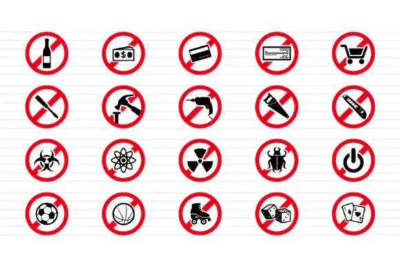 These forbidden signs icons are a practical and versatile design resource for anyone who needs scalable, editable, and ready-to-use prohibition symbols for professional visual communication.