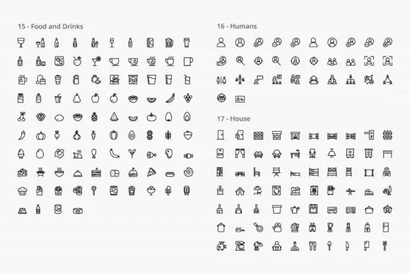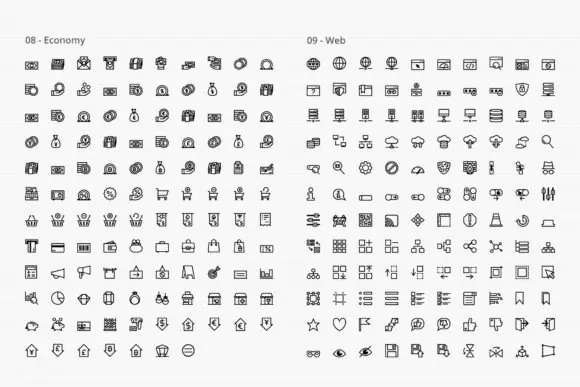This bundle covers an impressive variety of subjects including arrows, energy, electronics, phone and messages, files and documents, email, birthday, economy, web, school, hospital and pharmacy, tools, weather, food and drinks, humans, house, clothes, transportation, sports and games, media, personal care, fauna, flora, hand gestures, sea, baby, shipping and delivery, and more. This wide coverage makes it an excellent choice for both general-purpose design work and more specialized creative projects.