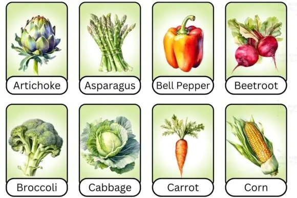 These 16 Adorable Vegetables Flashcards are a cheerful and practical learning resource for helping children build vocabulary, improve recognition skills, and enjoy playful early learning with food-themed activities.