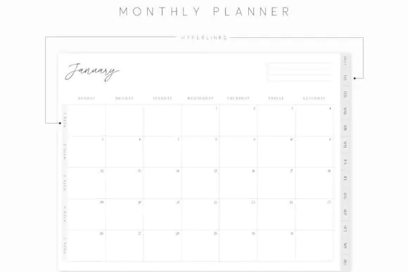 This planner comes as a hyperlinked PDF, making it easy to move between sections with a simple tap. It includes annual, monthly, and weekly calendar layouts covering January through December 2025, giving you a practical structure for full-year planning. Users can also choose between Monday-start and Sunday-start layouts depending on their preferred planning style.