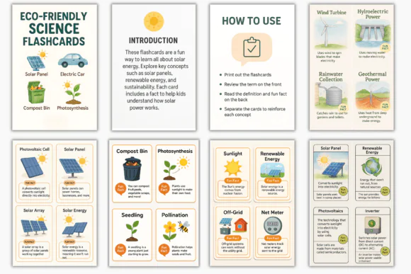 These Eco-Friendly Science Flashcards are a practical and visually charming learning resource for helping children discover environmental science topics while enjoying engaging, nature-inspired educational activities.