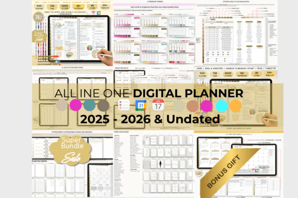 Run your work and life more smoothly with this All in One Digital Planner for Business, a powerful multi-year digital planning system designed for entrepreneurs, professionals, students, and busy multitaskers who want structure, flexibility, and style in one place. This planner includes dated versions for 2025, 2026, and 2027, plus an undated reusable version, making it a long-term digital organization tool you can keep using year after year.