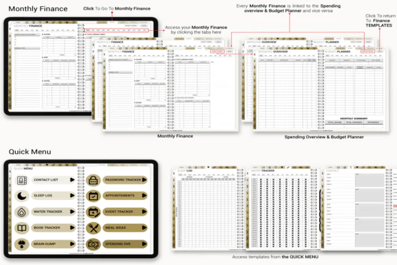 The bundle includes over 6,000 layout combinations, 48+ premium covers, thousands of digital stickers, and a wide collection of templates for planning every part of life and business. The planner includes daily, weekly, and monthly pages, along with sections for finance, wellness, self-care, events, travel, wedding planning, productivity, vision boards, brain dump pages, household organization, and more. It is also described as ADHD-friendly, with layouts designed for focus, simplicity, and easier daily planning.