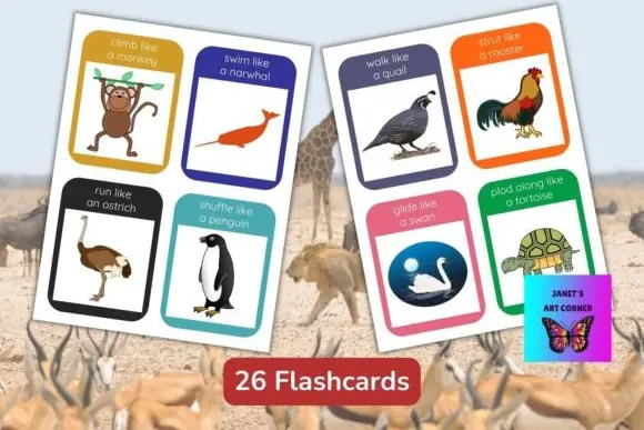 These animal movements flashcards are a versatile and engaging resource for helping children learn through action, imagination, and visual play while building early language and observation skills.