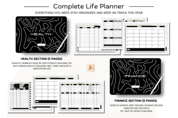 Stay organized with a clean and minimalist planning system using this Black and White Digital Planner. Designed with a sleek black-and-white style and an easy-to-use layout, this undated horizontal digital planner is perfect for anyone who wants a distraction-free planning experience while keeping schedules, goals, routines, and personal tracking all in one place.