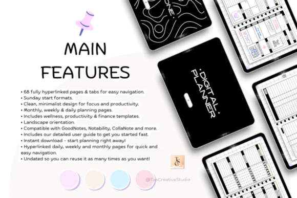This digital planner is compatible with GoodNotes, Notability, Noteshelf, XODO, Samsung Notes, and other PDF editing apps. It is a digital download product, and files become available once payment is confirmed.