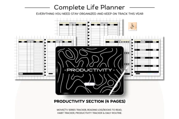 Stay organized with a sleek and modern look using this Black Life Digital Planner (Dark Mode). This undated horizontal digital planner is designed for people who want a clean, stylish, and focused planning experience while keeping schedules, routines, goals, and trackers in one easy-to-use digital system.