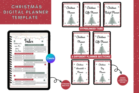 Make the holiday season easier, more joyful, and better organized with this Canva Christmas Digital Planner. This festive planner template is designed to help users manage every part of Christmas planning, from gifts and budgets to menus, parties, and household tasks. It is also a great option for online business owners who want a Christmas-themed digital product they can customize and sell on platforms like Etsy, Shopify, and other marketplaces.