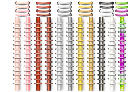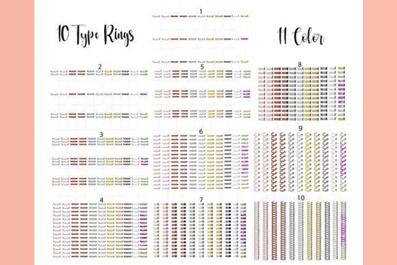 Digital Planner Binder Rings PNG Bundle | 268 Transparent Binder Ring Elements with Spine Pieces in Rose Gold, Copper, Silver, Gold, Black, White & Tie-Dye