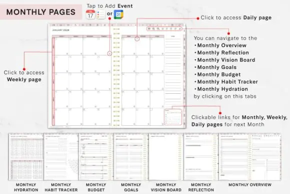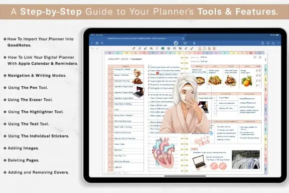 This planner is suitable for use with popular annotation-based planning workflows, including GoodNotes, Notability, and other tablet-friendly PDF planning setups. The source also describes it as compatible for iPad, Android, and tablet use, making it a convenient choice for digital planners who prefer working across different devices.