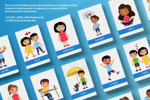 These Educational Flashcards Emotions are a practical and engaging printable resource for helping children build English emotion vocabulary while strengthening emotional recognition and communication skills in a fun visual way.