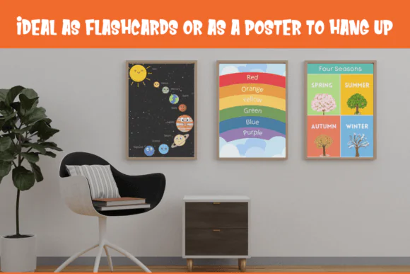 The bundle comes in an easy-to-use PDF format, allowing you to print the designs at home or through a professional print shop. These posters can be used as decorative learning aids, educational displays, or even as part of Montessori-style activities and visual teaching tools.