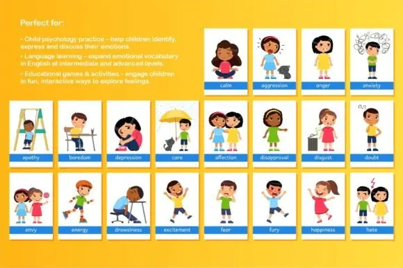 Ideal for child psychologists, counselors, educators, language teachers, homeschoolers, and parents, these cards can be used in therapy sessions, classroom discussions, social-emotional learning activities, and language development exercises. The set features expressive illustrations that bring emotions to life, making it easier for children to identify feelings such as joy, surprise, anger, envy, sadness, and more.