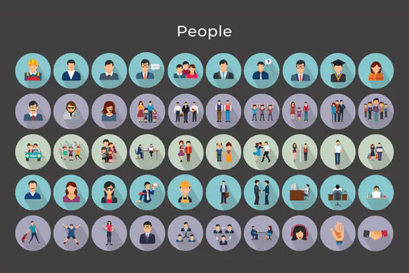Bring more life and personality to your creative projects with this versatile Flat Vector Icons People Set. This pack includes 50 flat vector people icons featuring a wide variety of characters, professions, poses, and everyday human interactions, making it a highly useful resource for designers, developers, marketers, and content creators.