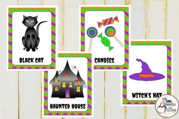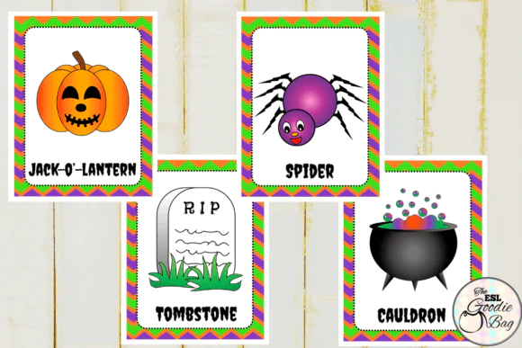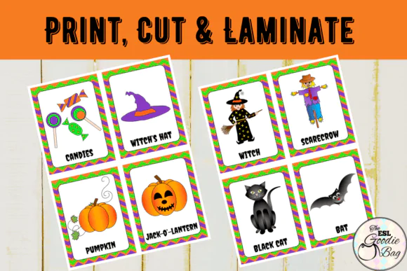 Simply print, cut, and laminate the cards for repeated use in a wide range of educational settings. Whether you are teaching holiday vocabulary, planning a themed language lesson, or adding excitement to your October classroom activities, these flashcards are a practical and enjoyable teaching tool.