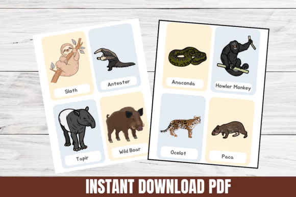 These Jungle Animals Vocabulary Flashcards are a fun and educational printable resource for helping children explore rainforest animals while building vocabulary, science knowledge, and visual recognition skills.