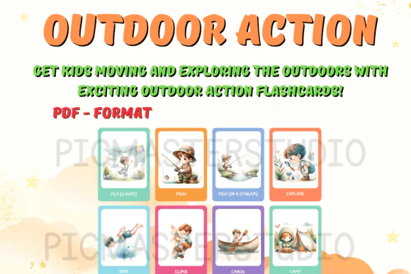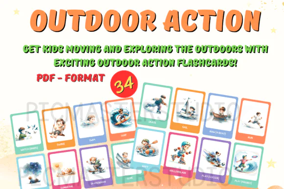 This set includes 34 outdoor action flashcards, each featuring charming watercolor illustrations that bring nature-themed activities to life in a fun and inviting way. From backyard exploration to park adventures, these cards introduce children to exciting outdoor actions and experiences that encourage discovery, creativity, and joyful movement.