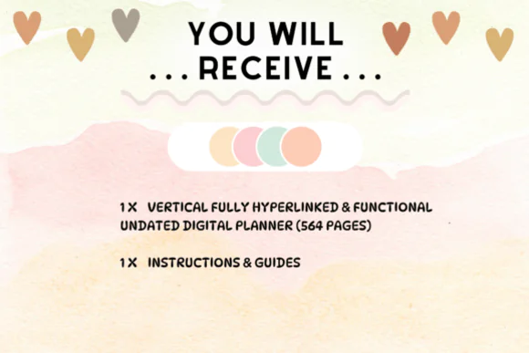 This planner includes hyperlinked daily, weekly, and monthly pages for quick navigation, and because it is undated, you can start anytime and reuse it year after year. The package includes 1 fully hyperlinked 564-page planner in a vertical 11 x 8.5 inch format, along with instructions and guides to help you get started easily.
