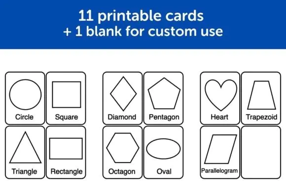 This set includes 11 printable shape flashcards plus 1 blank card for custom use, making it a flexible resource for toddlers, preschool learners, homeschool lessons, classroom activities, and early educational play. The cards are easy to print and use, and the shapes can be colored in for added fun, helping children strengthen shape recognition, visual learning, and fine motor skills at the same time.