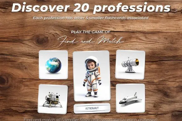 This set features 20 beautifully illustrated professions, each presented through a main card and supported by additional smaller matching cards. Children can enjoy a find-and-match learning game that helps them connect each profession with related items, building a stronger understanding of different jobs and the roles people play in the world around them.